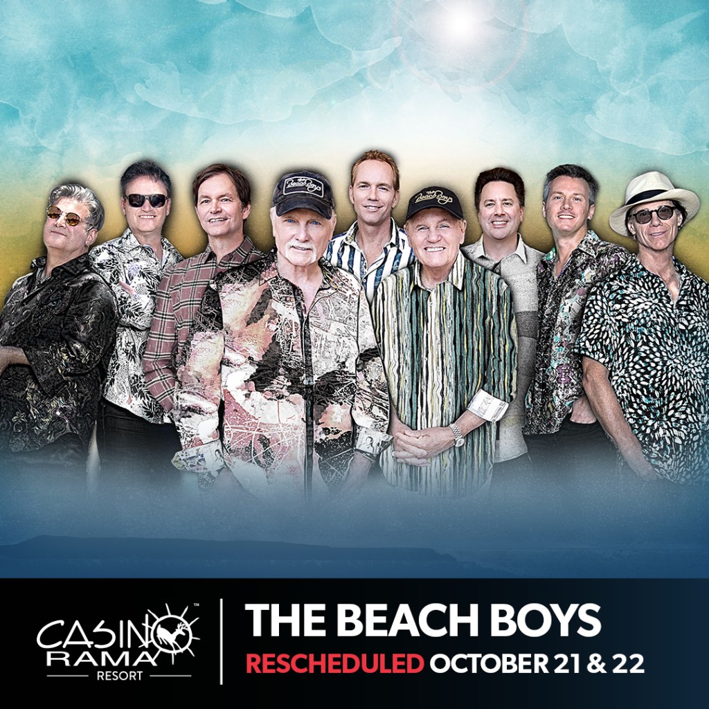 The Beach Boys: 60th Anniversary Tour – RESCHEDULED – OCT 21 & 22 Where Casino Rama Resort, Orillia Map When Oct 21/22 09:00 PM - Oct 21/22 11:59 PM Age 12+ Price Starting at $$59+ Website https://www.casinorama.com/beach-boys-april-15/ The Beach Boys: 60th Anniversary Tour Doors open: 8PM Showtime: 9PM Click here for tickets