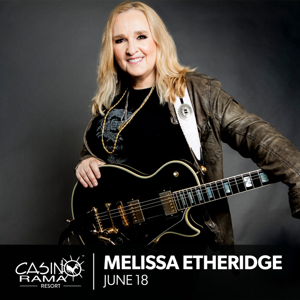 Melissa Etheridge: One Way Out Tour Where Casino Rama Resort, Orillia Map When Jun 18/22 08:00 PM - Jun 18/22 11:59 PM Age 12+ Price Starting at $$40+ Website https://www.casinorama.com/melissa-etheridge-june-18/ Melissa Etheridge: One Way Out Tour Doors open: 7PM Showtime: 8PM Click here for tickets