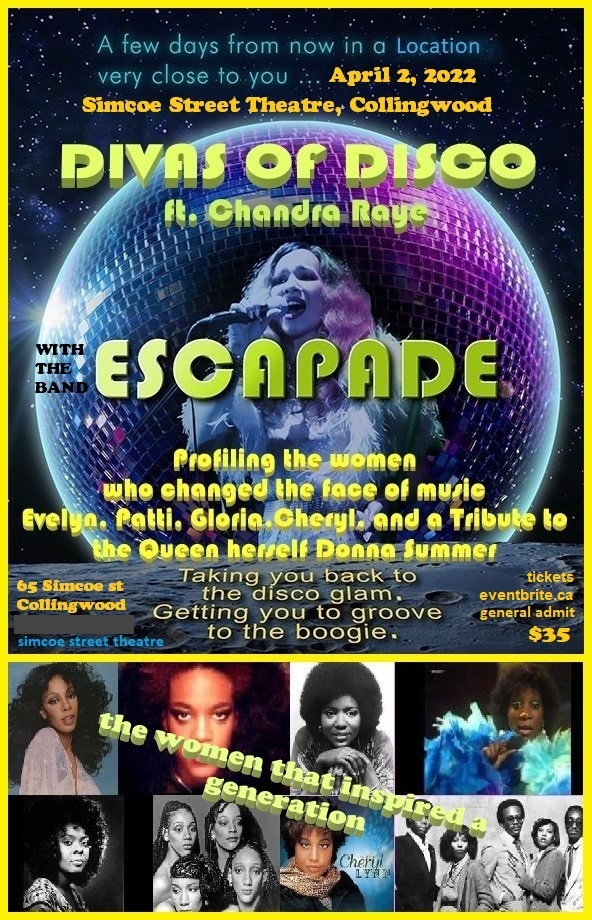 Divas of Disco Where Simcoe Street Theatre, Collingwood Map When Apr 02/22 07:30 PM - Apr 02/22 10:30 PM Age All Website eventbrite.ca