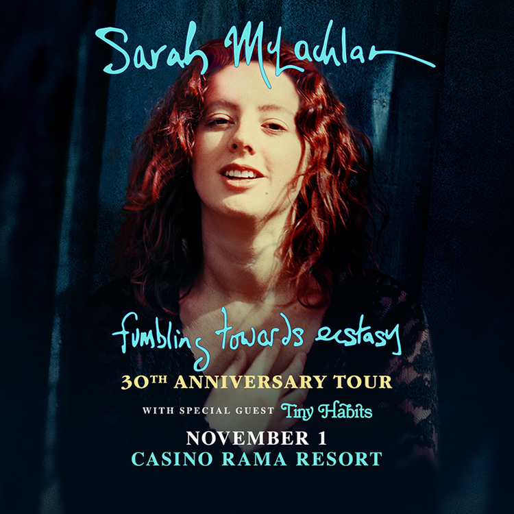 The sensational Sarah McLachlan returns to Casino Rama Resort on November 1 to begin the Canadian leg of her Fumbling Towards Ecstasy 30th Anniversary Tour. The multi-award winning Canadian singer/songwriter will play the beloved album Fumbling Towards Ecstasy in its entirety, marking 30 years since the album’s release. Fans can also look forward to singing along with some of their other favourite songs from McLachlan’s long and illustrious career. Sarah McLachlan – Fumbling Towards Ecstasy 30th Anniversary Tour with special guest Tiny Habits.