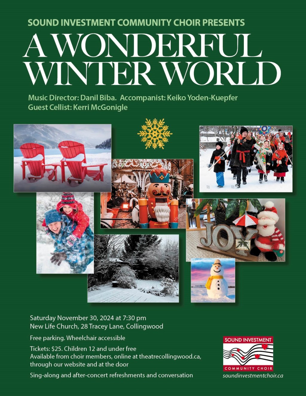 On Saturday November 30 at 7:30 pm Sound Investment Community Choir presents their annual Christmas concert, A Wonderful Winter World. This year we celebrate both winter and the festive season with a wonderful selection of music and song, including our popular audience sing-along. Join us afterward for refreshments and conversation.