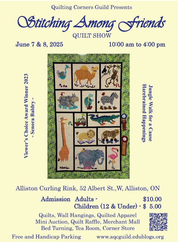 Quilting Corners Guild is hosting a Quilt show faturing Quilts, Mini Auction, Quilt Raffle, Merchant Mall, Bed Turning, Tea Room and Corner Store.