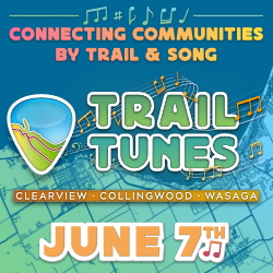 Get out on the trails this International Trails Day for Trail Tunes, a collaborative, regional event connecting over 100kms of trail and rich musical culture between Wasaga Beach, Collingwood, and Clearview Township. The new format will mean that concerts are staggered to allow residents and visitors a chance to bike to every locatoin! Taking place on Saturday, June 7th from 11:00 a.m. to 5:00 p.m. residents and visitors are encouraged to bike or hike, through Collingwood, Wasaga Beach and Clearview enjoying free, live music at trailheads in each municipality.