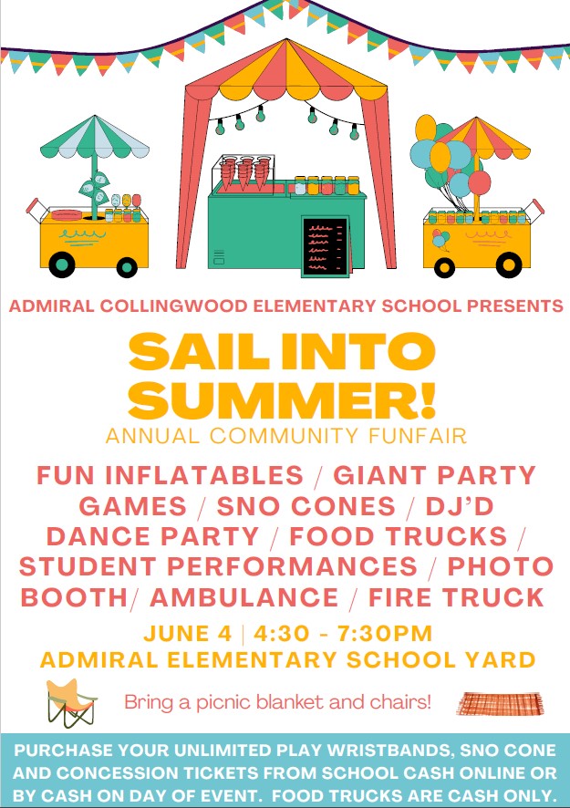 Admiral Collingwood Elementary School is excited to host our annual Sail Into Summer Festival on June 4th, 2025—a fun-filled celebration for our students, families, and the wider community!