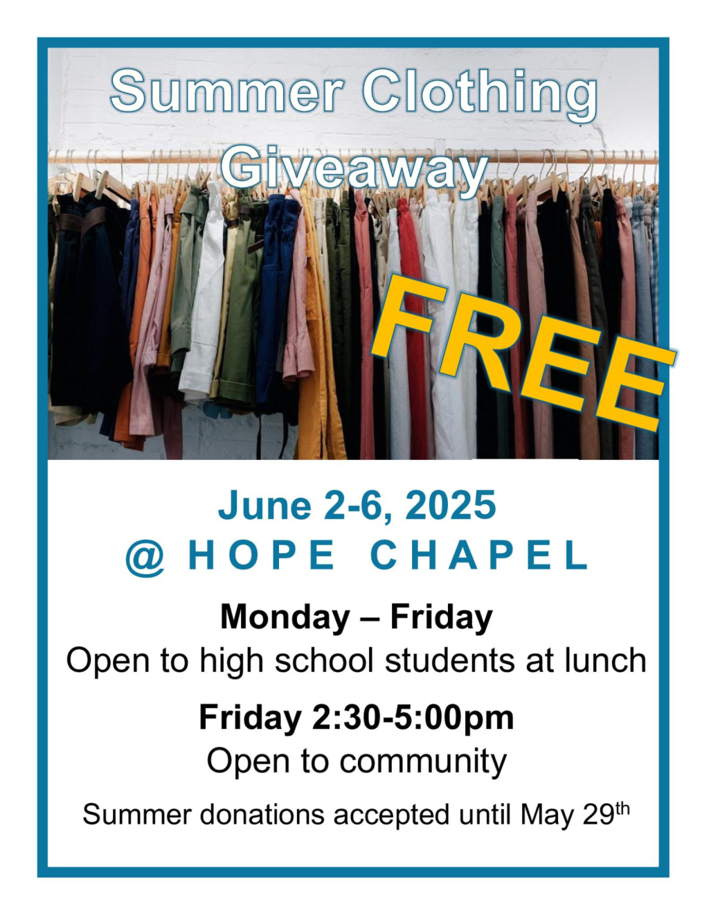 Join us for Hope Chapel’s Summer Clothing Giveaway!