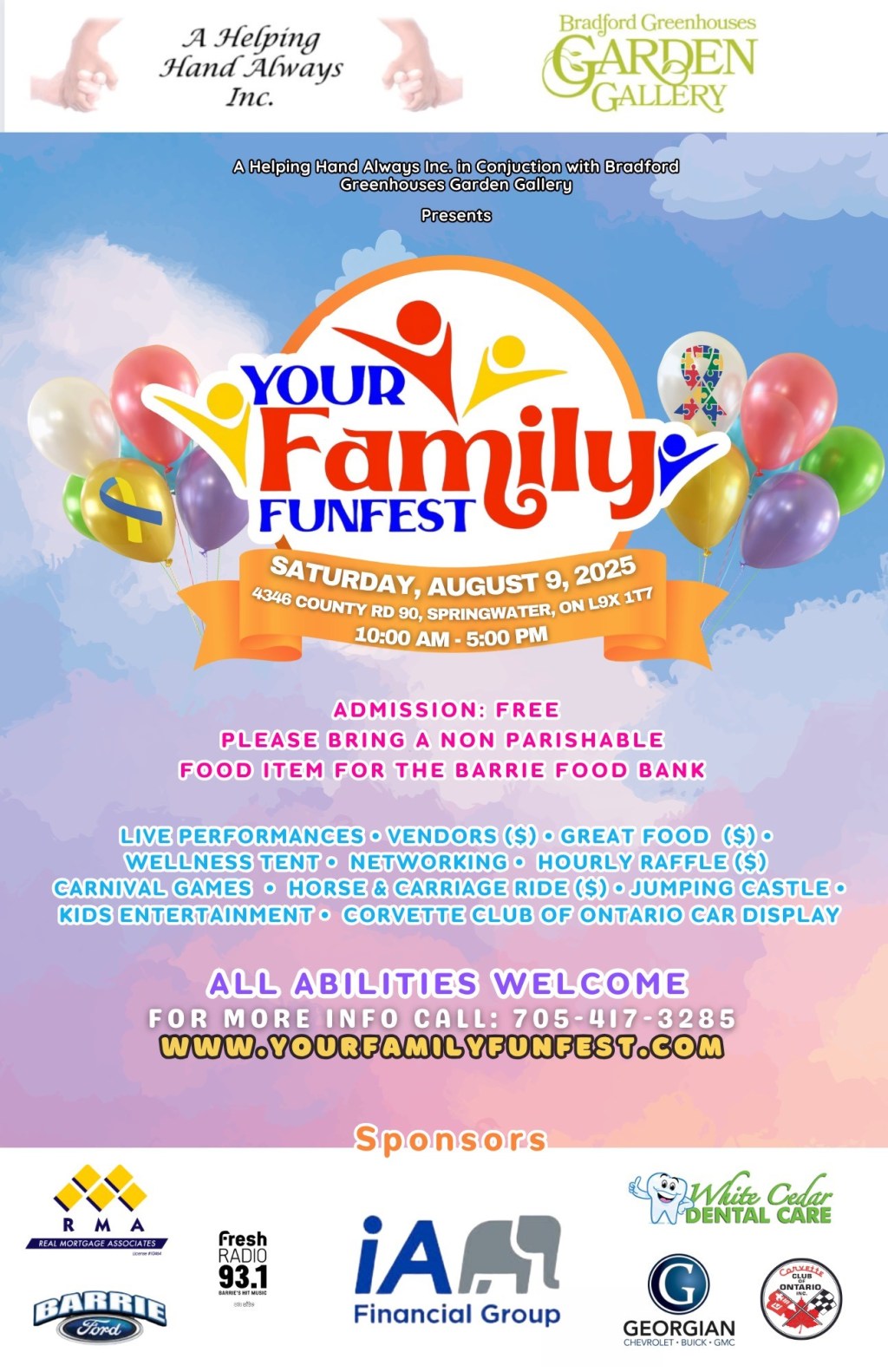 Your Family Funfest Where Bradford Greenhouses Garden Gallery, 4346 County Rd. 90 Springwater, Barrie, ON, L4M 4Y6, Canada Map When Aug 09/25 10:00 AM - Aug 09/25 05:00 PM Age All Website www.yourfamilyfunfest.com