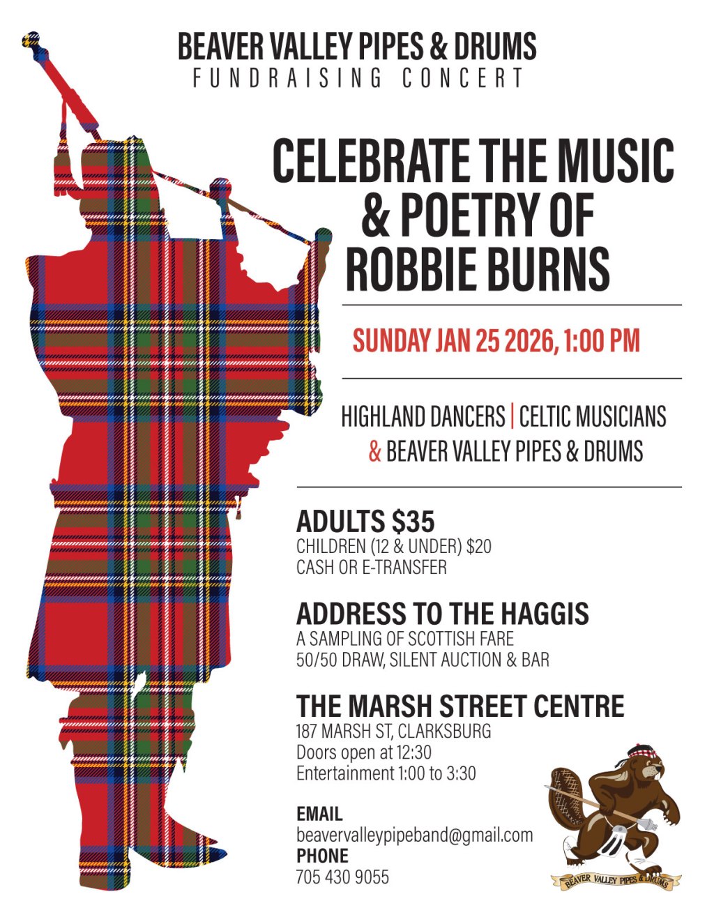 Celebrate The Music & Poetry Of Robbie Burns Where Marsh Street Centre, 187 Marsh Street, Clarksburg Map When Jan 25/26 01:00 PM - Jan 25/26 03:30 PM Age All